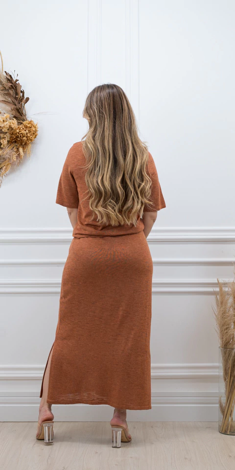 • Saia midi em tricot, com ajuste na cintura, fenda lateral discreta e modelagem que valoriza o corpo com muito conforto.